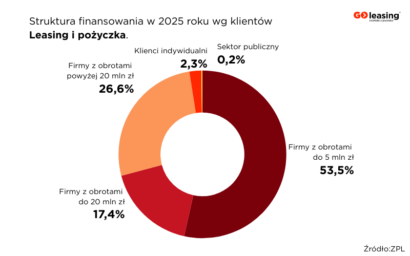 Struktura finansowania leasingiem w 2025 roku według kategorii klientów (źródło: ZPL).